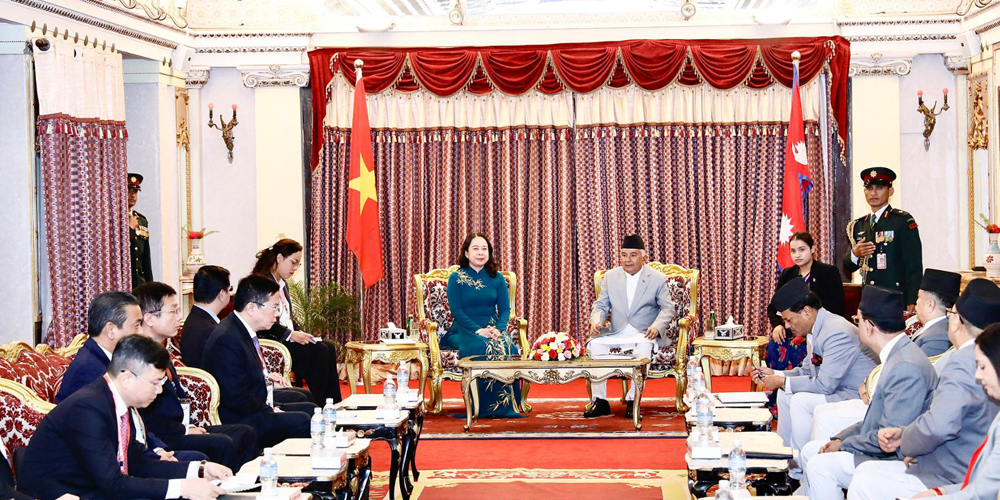 काठमाडौं, ९ भदौ । राष्ट्रपति रामचन्द्र पौडेलसँग नेपाल भ्रमणमा रहनुभएकी समाजवादी गणतन्त्र भियतनामका उपराष्ट्रपति वो थि आन्ह सुआनले आज शिष्टाचार भेट गर्नुभयो ।