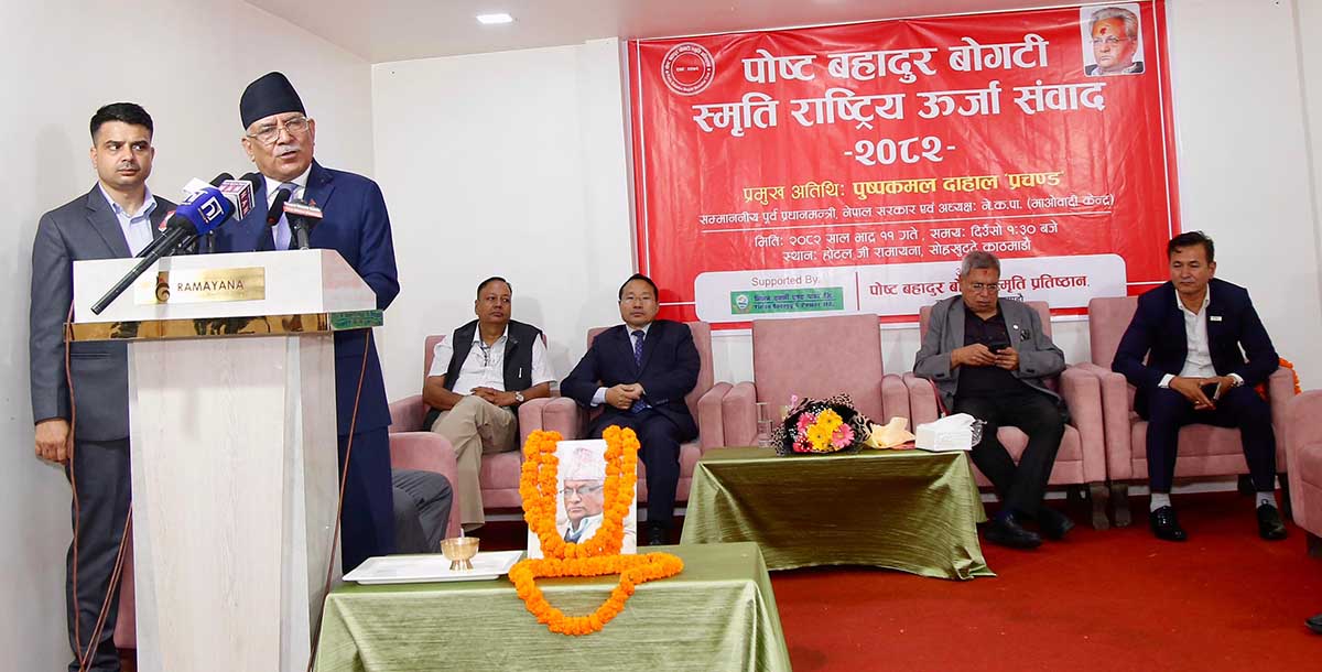पोस्टबहादुर बोगटी स्मृति प्रतिष्ठानद्वारा आयोजित “नेपालको ऊर्जा राज्यशिल्प र जलविद्युत् परिदृश्य: रणनीतिक प्राथमिकता, चुनौती र सम्भावना” विषयक राष्ट्रिय ऊर्जा संवादलाई सम्बोधन गर्दै उहाँले ऊर्जा र कृषिलाई गणतन्त्रको पहिलो सरकारले नै आधारभूत प्राथमिकता दिएको स्मरण गर्नुभयो ।