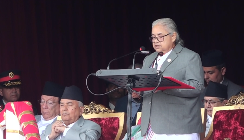 यस्ता एजेण्डालाई आत्मसाथ गर्दै जनअपेक्षा अनुसार काम गर्न यो सरकार प्रतिबद्ध छ ।’ यस्तै, उनले शासकीय आकांक्षा बोकेर, कुनै पदको लोभ लिएर प्रधानमन्त्री नभएको भन्दै देश संकटमा रहेको बेला युवा पुस्ताको अनुरोधको आधारमा संक्रमणको व्यवस्थापन गर्न प्रधानमन्त्री बनेको बताइन् ।