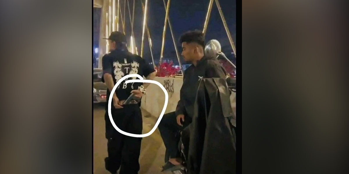 तस्बिरमा बिजुलीबजारको आर्क व्रिज जस्तो देखिने स्थानमा टीओबी लेखेको टिसर्ट लगाएका युवकले आफ्नो पाइन्टको पछाडि भागमा पेस्तोल घुसारिरहेको र अर्का युवकले नियालिरहेको देखिन्छ । यो तस्बिर सक्कली भएको आँकलन प्रहरीले प्रारम्भिकरूपमा गरेको छ ।