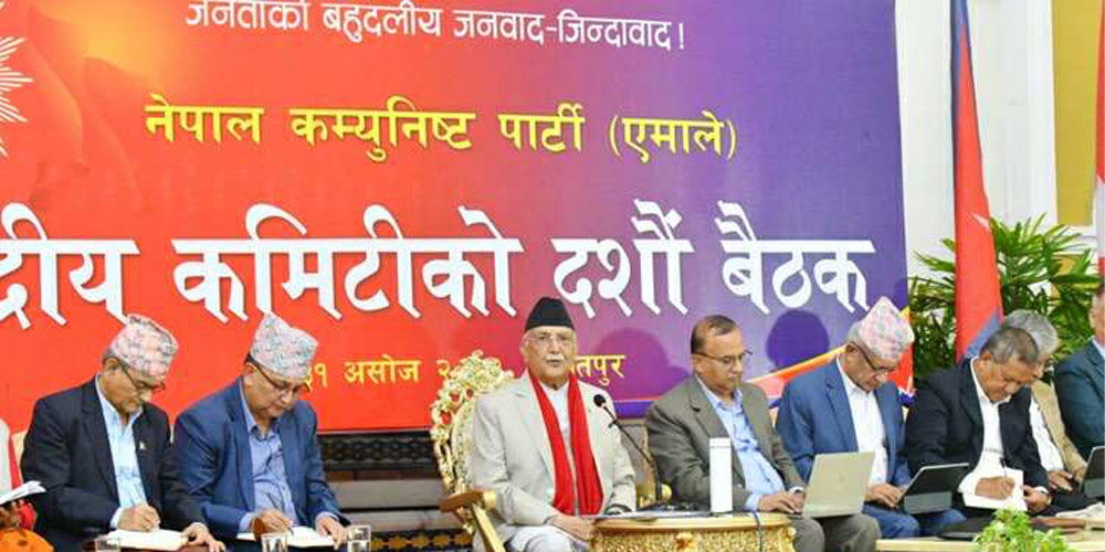 काठमाडौं, २९ असोज । नेकपा (एमाले) को केन्द्रीय कमिटीको बैठक सुरु भएको छ । ललितपुरको भनिमण्डलमा एमाले अध्यक्ष केपी शर्मा ओलीसहितको बैठक केहीबेर अघि सुरु भएको हो ।