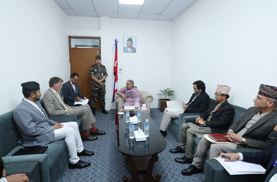 काठमाडौँ, १३ कात्तिक । प्रधानमन्त्री सुशीला कार्कीसँग नेपालका लागि जर्मनीका राजदूत उडो भोल्जले शिष्टाचार भेटवार्ता गर्नुभएको छ।प्रधानमन्त्री तथा मन्त्रिपरिषद कार्यालयमा बिहीबार भएको भेटमा नेपाल र जर्मनीबीच द्विपक्षीय हित र मित्रताका विषयमा विचार आदानप्रदान भएको हो । प्रधानमन्त्रीमा कार्की नियुक्त हुनुभएपछि उहाँहरुबीचको यो पहिलो भेट हो । यस क्रममा जर्मनीका राजदूत भोल्जले प्रधानमन्त्री कार्कीलाई सफल कार्यका लागि शुभकामना व्यक्त गर्दै सदाझैं नेपालको प्राथमिकताअनुसार आवश्यक सहयोग गर्न तयार रहेको बताउनुभयो ।