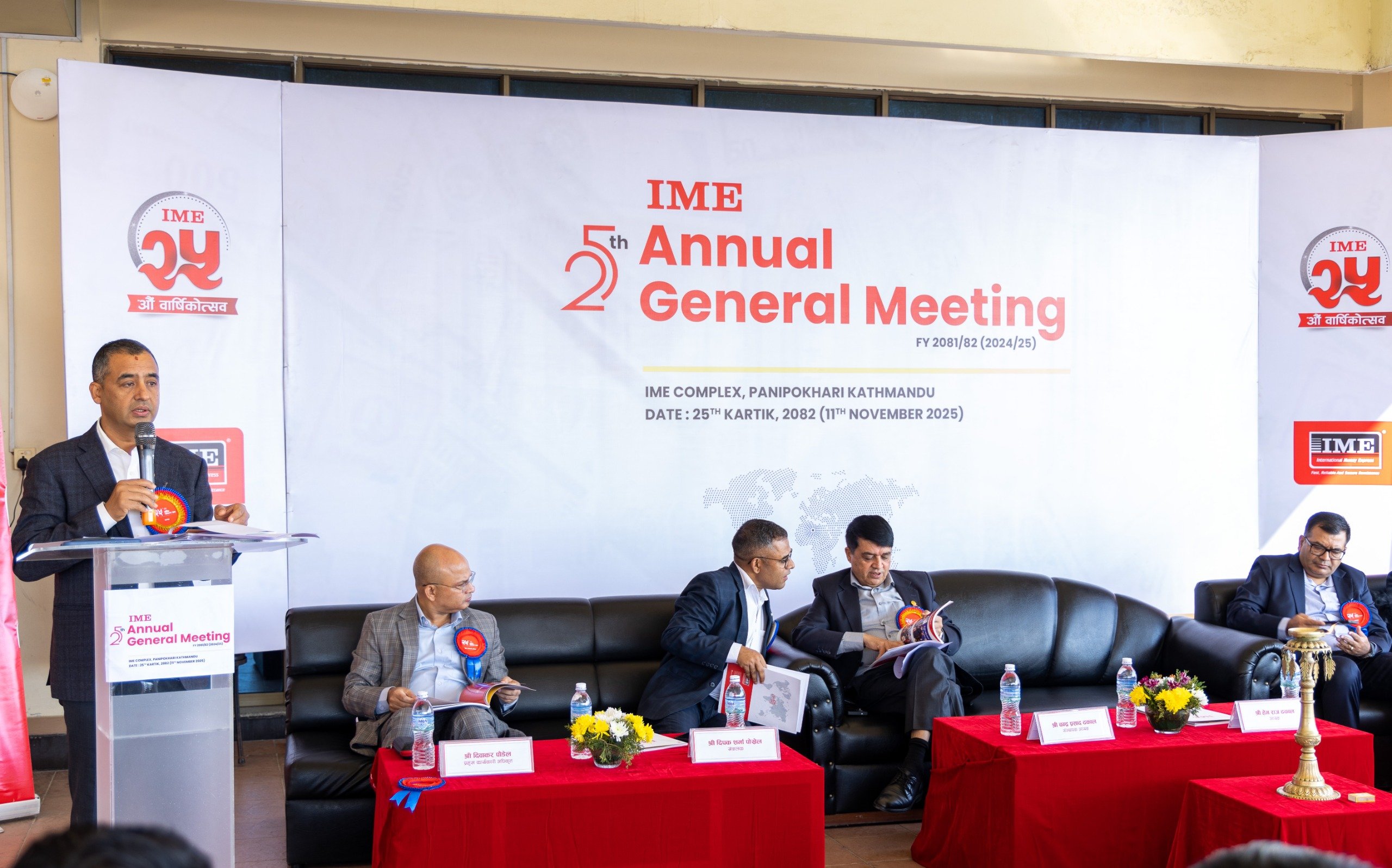 सभामा संस्थापक अध्यक्ष तथा नेपाल उद्योग वाणिज्य महासंघका अध्यक्ष चन्द्र प्रसाद ढकालले आइएमईको २५ वर्षे यात्रा नागरिक जीवनस्तर सुधार र उद्यमशीलता विकासमा महत्वपूर्ण योगदान पुर्याएको बताए। उनले आइएमईलाई सर्वाधिक लोकप्रिय ब्रान्डको रूपमा स्थापित हुनु कम्पनीको गौरवपूर्ण उपलब्धि भएको उल्लेख गरे।