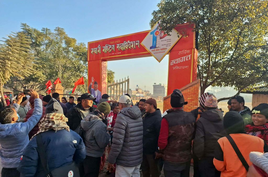 काठमाडौं, २७ मंसिर । नेकपा एमालेको ११ औं राष्ट्रिय महाधिवेशनको उदघाटन समारोह स्थलमा कार्यकर्ताहरु बिहानै आइपुगेका छन् । विभिन्न जिल्लाबाट आएका कार्यकर्ताहरू सल्लाघारी क्षेत्रमा देखिन्छन् ।उदघाटन समारोह स्थल वरपर भेला भएकाहरु साँस्कृतिक विशेषतासहितको आकर्षक मञ्चमा पुगेर फोटो खिचाउने इच्छा व्यक्त गरिरहेका छन् ।