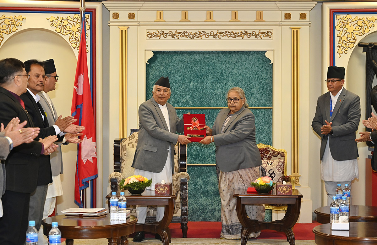 काठमाडौं, २८ मंसिर । राष्ट्रपति रामचन्द्र पौडेलसमक्ष राष्ट्रिय सुरक्षा परिषद्को प्रतिवेदन पेस भएको छ । प्रधानमन्त्री तथा राष्ट्रिय सुरक्षा परिषद् अध्यक्ष सुशीला कार्कीले राष्ट्रपति कार्यालयमा पुगेर आज वार्षिक प्रतिवेदन पेस गर्नुभएको हो ।