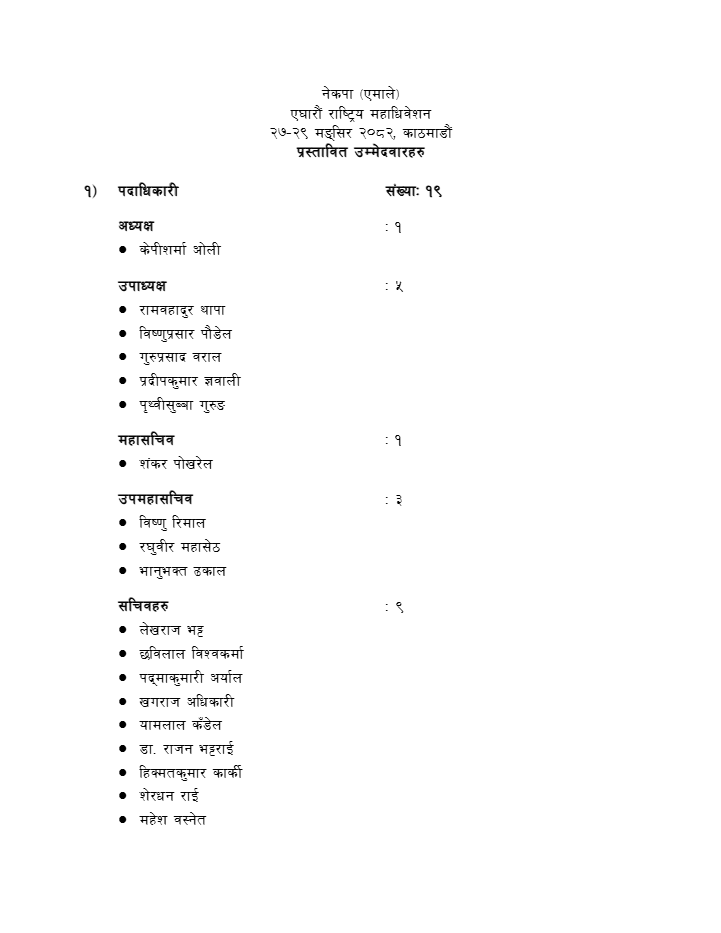 यस्तो छ ओली पक्षबाट प्रस्तावित सबै तहका उम्मेदवारको सूची (क्लस्टरसहित)