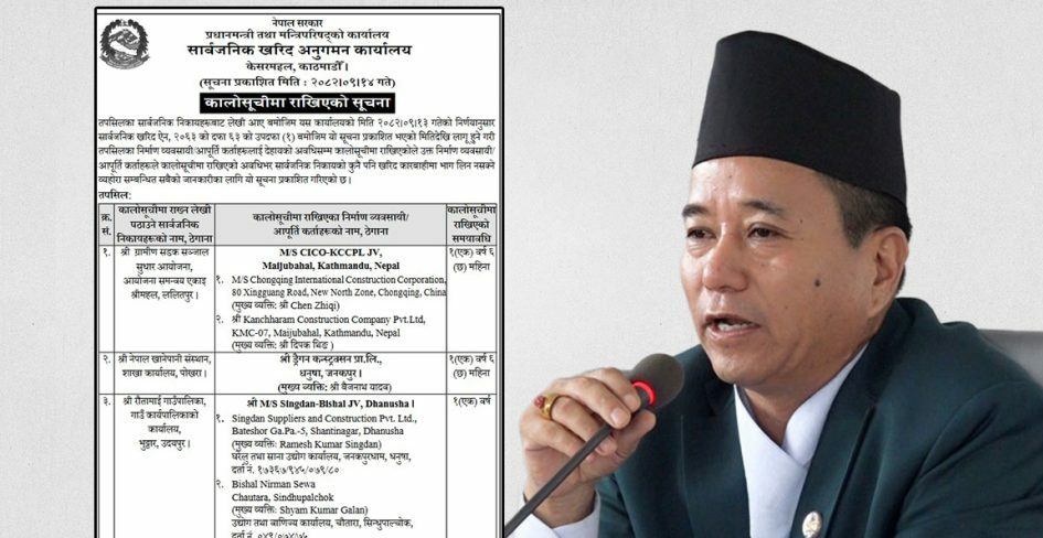 सो सिफारिस अनुसार कालोसूचीमा राख्ने निर्णय पुस १३ गते भएको सार्वजनिक खरिद अनुगमन कार्यालयले आज जारी गरेको सूचनामा लेखिएको छ । कालो सूचीको डेढ वर्षे अवधि भने आज सूचना प्रकाशित भएको मिति पुस १४ गतेदेखि गणना सुरु भएको छ ।