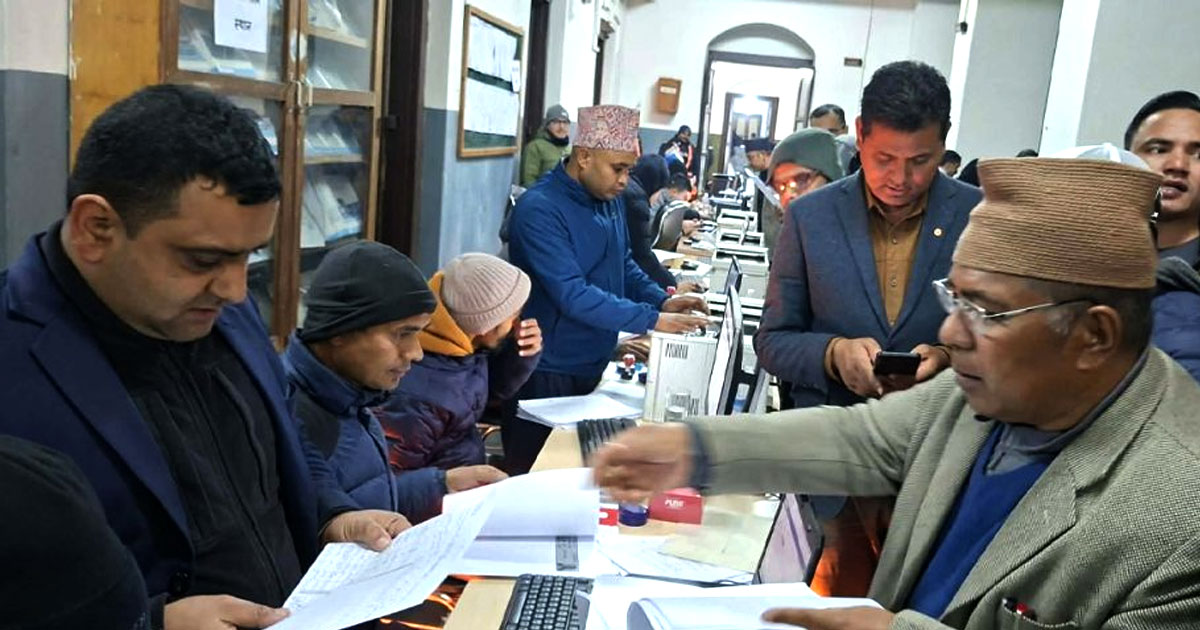 काठमाडौँ, १५ पुस । आगामी फागुन २१ गते हुने प्रतिनिधिसभा सदस्य निर्वाचनका लागि ६३ राजनीतिक दलले निर्वाचन आयोगमा समानुपातिकतर्फको बन्दसूची बुझाएका छन्।निर्वाचन आयोगका अनुसार नेकपा (एमाले), नेपाली कम्युनिस्ट पार्टी, राष्ट्रिय स्वतन्त्र पार्टीलगायत विभिन्न ठूला तथा साना दलहरूले समानुपातिकतर्फको उम्मेदवार बन्दसूची दर्ता गराइसकेका छन्।