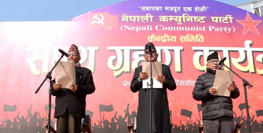 प्रचण्ड र नेपालले लिए नेकपाको शपथ