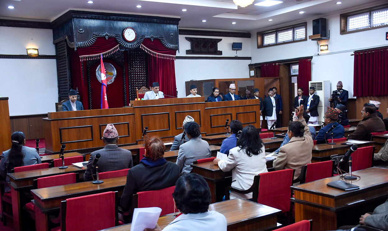 काठमाडौं,४ माघ । आइतबारको राष्ट्रिय सभा बैठक साढे ७ मिनेट बसेर सकिएको छ ।चालू अधिवेशनको पहिलो दिन आज दुई वटा कार्यसूची पेस भए । पहिलो अधिवेशन आह्वानसम्बन्धी राष्ट्रपतिबाट प्राप्त पत्रको व्यहोरा पढेर सुनाउने कार्यसूची छ । दोस्रो राष्ट्रिय सभा सदस्य बलदेव बोहराको निधनमा शोक प्रस्ताव प्रस्तुत गर्ने कार्यसुची ।