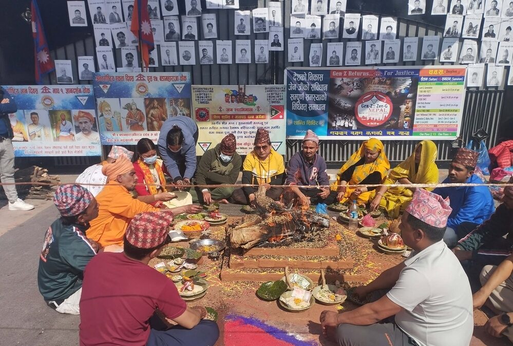 जेनजी सहिदको आत्माको शान्तिका लागि संसद् भवनअघि हवन