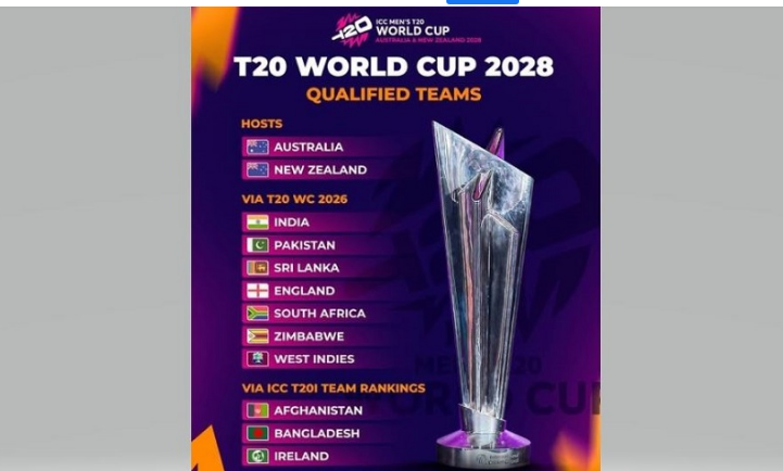 काठमाडौ, ८ फागुन ।सन् २०२८ मा अष्ट्रेलिया र न्यूजिल्याण्डमा हुने आईसीसी टी–२० विश्वकप क्रिकेट खेल्ने १२ टोलीको टुंगो लागेको छ ।