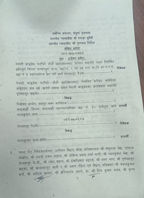 तीन कारण देखाउँदै सर्वोच्चले दियो कांग्रेसको नेतृत्वमा गगनलाई वैधता (पूर्णपाठ)