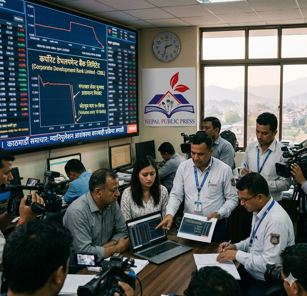 काठमाडौं, १५ वैशाख । विकास बैंक समूह अन्तर्गतको कर्पोरेट डेभलपमेन्ट बैंक लिमिटेड को शेयर मूल्यमा मंगलबार असामान्य गिरावट देखिएको छ, जसले बजारमा म्यानिपुलेशनको आशंका बढाएको छ।