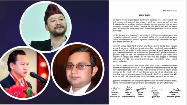 काठमाडौं, २६ भदौ । विभिन्न राजनीतिक दलनिकट युवा संगठनहरूले नयाँ सरकार गठन गर्दा संविधानबाहिर नजान
