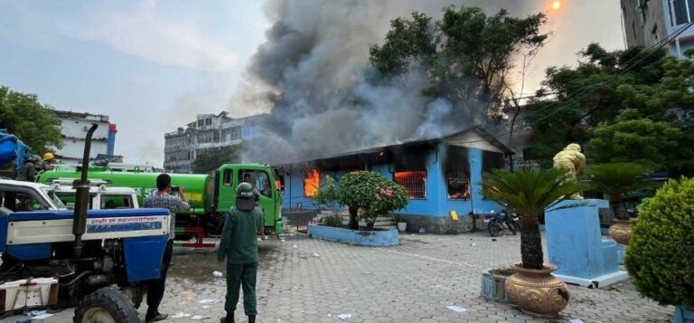 काठमाडौँ : निवर्तमान गृहमन्त्री रमेश लेखको कलंकीस्थित घरमा आगजनी भएको छ। आज आन्दोलनकारीहरूले लेखकको घरमा