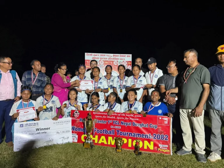 दमौली (तनहुँ), १५ भदौ । जिल्लाको देवघाटमा वाइसिएलद्वारा आयोजित फुटबल प्रतियोगितामा घाइते भएकी शुक्लागण्डकी नगरपालिका–१०