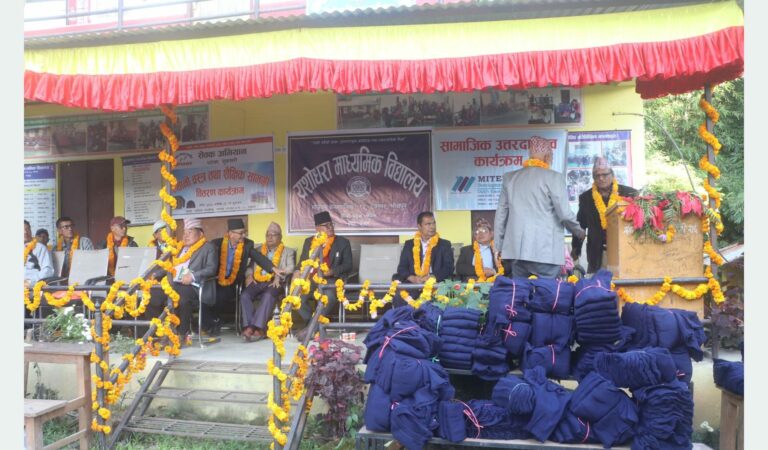 भोजपुर : भोजपुर नगरपालिका–१२ टक्सारस्थित यशोधरा माध्यमिक विद्यालयका पाँच सय विद्यार्थीलाई न्यानो कपडा र शैक्षिक