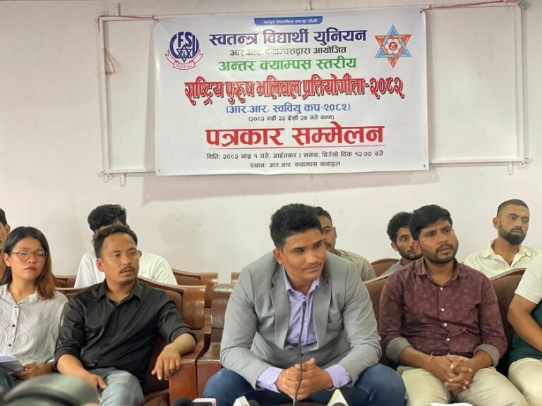 काठमाडौं, १ भदौ । अन्तर क्याम्पस स्तरीय राष्ट्रिय पुरुष भलिबल भदौ अन्तिम साताबाट सुरु हुने