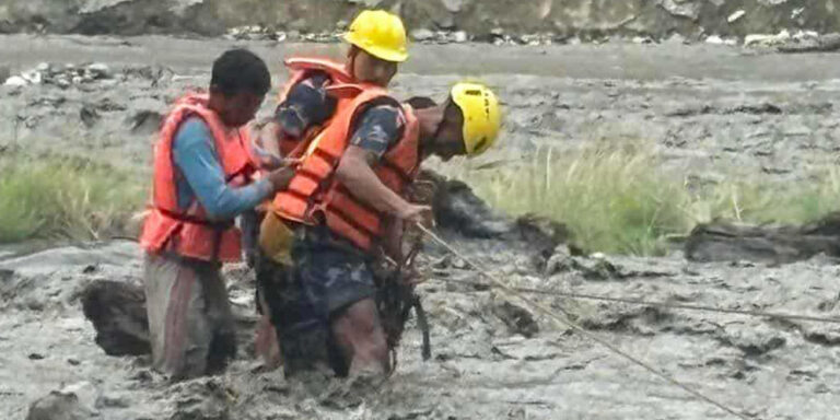 ठुलोभेरी, १३ साउन । डोल्पाका जिल्लाको ठुलोभेरी नगरपालिका–३, धुपीचौरस्थित भेरी नदीको बिच भागमा फसेका चार