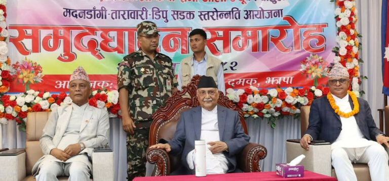 काठमाडौं, २९ असार प्रधानमन्त्री केपी शर्मा ओलीले झापाको दमक नगरपालिकास्थित मदनडाँगी (ताराबारी) डिपु सडक स्तरोन्नति