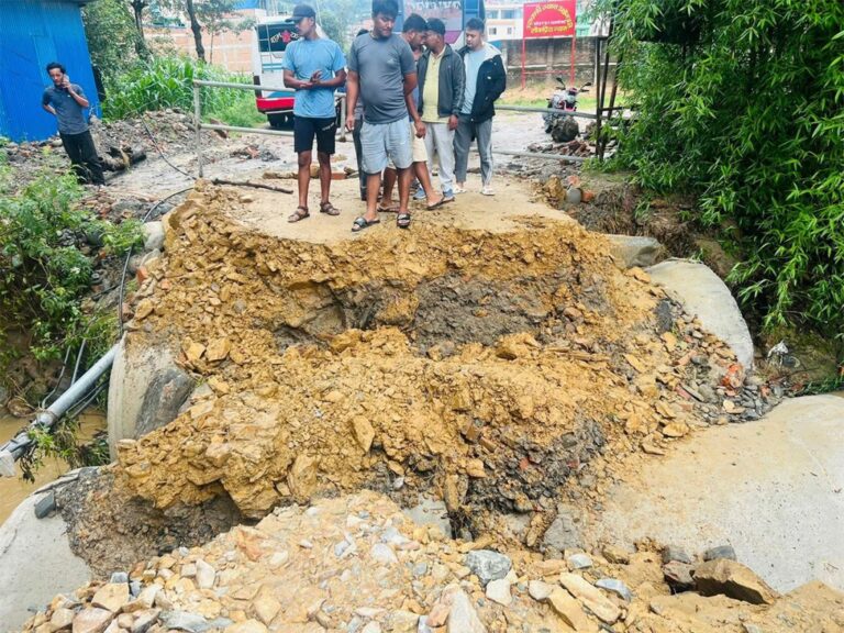 काठमाडौं, २३ असार । पुण्यमाता खोलाको पुल भाँचिएर ह्युमपाइप राखेर खुलाइएको बनेपा–नाला–भक्तपुर सडकखण्ड पुनः अवरुद्ध