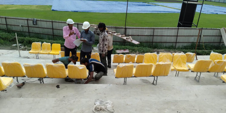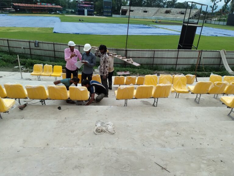 काठमाडौं, २२ असार । कीर्तिपुरमा रहेको त्रिभुवन विश्वविद्यालय (त्रिवि) क्रिकेट मैदानको प्यारापिटमा सिट जडान कार्य