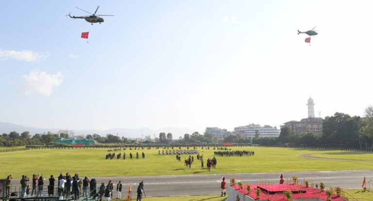काठमाडौं, १३ असोज । नेपाली सेनाले बडादशैँको अवसरमा सैनिक मञ्च टुँडिखेलमा आज दिउँसो फूलपाती बढाइँको