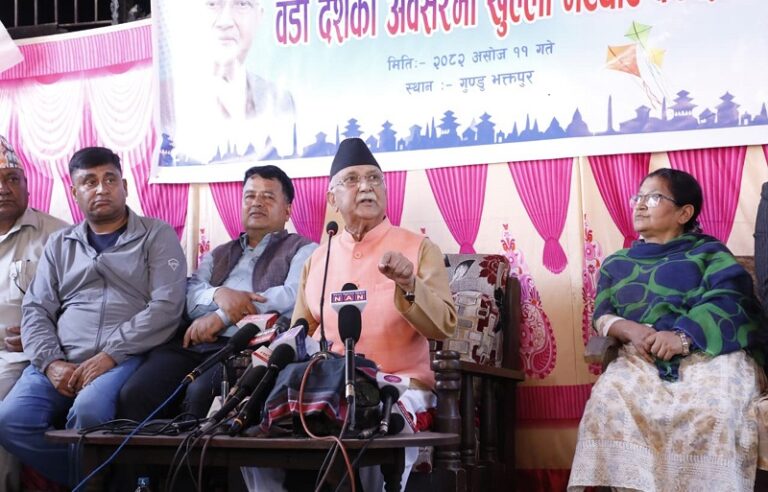 काठमाडौं, ११ असोज । नेकपा (एमाले)का अध्यक्ष केपी शर्मा ओलीले अन्तरिम सरकारलाई देश जिम्मा लगाएर