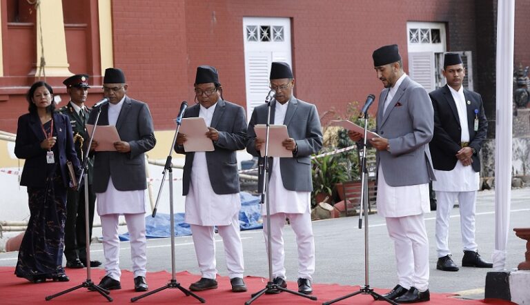 काठमाडौं, ६ असोज । नवनियुक्त चार जना मन्त्रीले पद तथा गोपनीयताको शपथ लिएका छन् ।