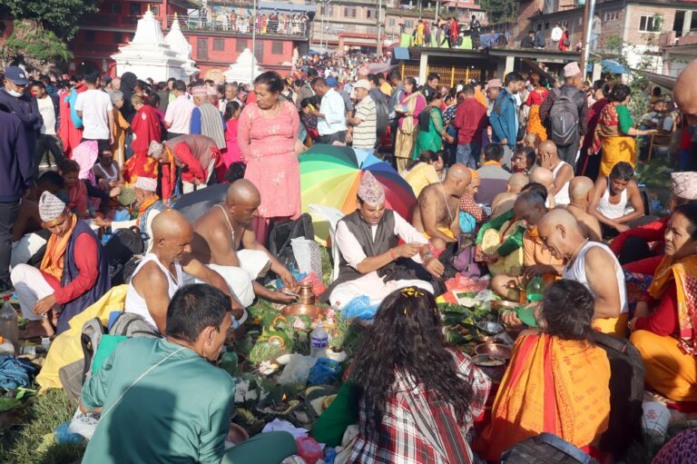 काठमाडौं, ५ असोज । आश्विन कृष्ण प्रतिपदादेखि सुरु भएको पितृपक्ष आज अपराह्नकालमा दिवङ्गत पितृका नाममा