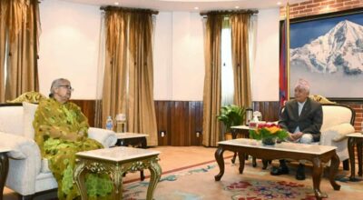 काठमाडौँ, ८ पुस । राष्ट्रपति रामचन्द्र पौडेल र प्रधानमन्त्री सुशीला कार्कीले तीन दलका शीर्ष नेतासँग छलफल गरेका छन् ।छलफलमा नेकपा एमालेका अध्यक्ष केपी शर्मा ओली, नेपाली कांग्रेसका सभापति शेरबहादुर देउवा र नेपाली कम्युनिस्ट पार्टीका अध्यक्ष पुष्पकमल दाहाल प्रचण्ड सहभागी हुनुहुन्छ। जेनजी आन्दोलनपछि तीनवटै दलका शीर्ष नेतासँग राष्ट्रपति र पौडेलले गरेको यो पहिलो छलफल हो ।…