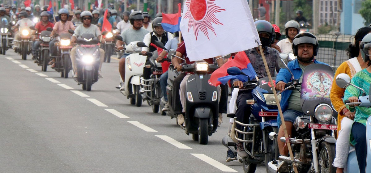 काठमाडौं, २४ असोज । एमाले निकट युवा संघले भोलि काठमाडौंमा आयोजना गर्ने भनेको र्याली स्थगित भएको छ । जिल्ला प्रशासन कार्यालयले अनुमति नदिएपछि र्याली स्थगित गरिएको हो । सुरक्षा संवेदनशीलता देखाउँदै जिप्रकाले अनुमति नदिएको हो ।