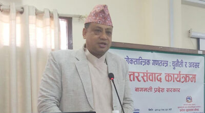 काठमाडौं, २८ मंसिर । राष्ट्रपति रामचन्द्र पौडेलसमक्ष राष्ट्रिय सुरक्षा परिषद्को प्रतिवेदन पेस भएको छ । प्रधानमन्त्री तथा राष्ट्रिय सुरक्षा परिषद् अध्यक्ष सुशीला कार्कीले राष्ट्रपति कार्यालयमा पुगेर आज वार्षिक प्रतिवेदन पेस गर्नुभएको हो । राष्ट्रपति कार्यालयका प्रवक्ता प्रदीपकुमार कोइरालाका अनुसार नेपालको संविधानको धारा २६६ उपधारा (३) बमोजिम प्रधानमन्त्री कार्कीले राष्ट्रिय सुरक्षा परिषद्को आर्थिक वर्ष २०८१/०८२ को…